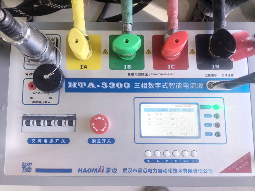 下面介紹使用 HTA-3300? 三相數(shù)字式智能大電流源,采用系統(tǒng)電壓為基準同步的方法,進行改擴建線路接入母差保護向量檢查。